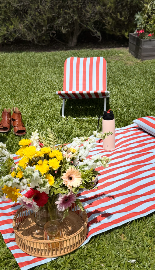 Manta SUMMER, confeccionada en tela impermeable, ideal para usar al aire libre. Su diseño colorido y moderno aporta estilo y confort, mientras que su material resistente protege de la humedad y facilita la limpieza. Perfecta para picnics, terrazas, playa o jardín.