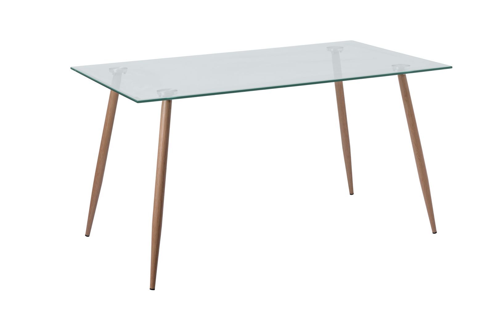 Mesa rectangular BARI con cubierta de vidrio y patas metálicas efecto madera