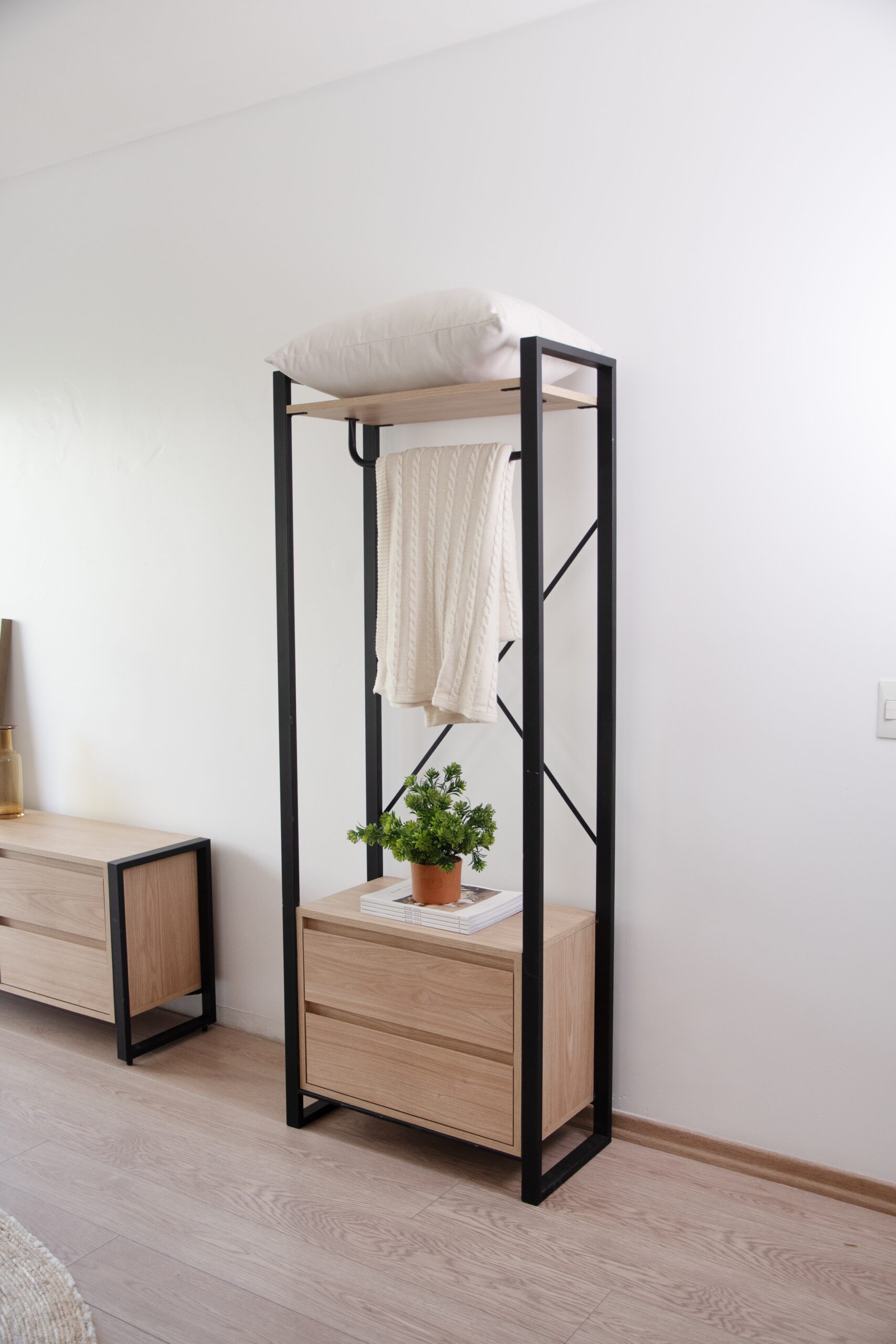 Recibidor ALMA: Elegante mueble de entrada, con estructura de hierro y enchapado en madera de paraíso. Su diseño combina robustez y calidez, ideal para aportar estilo y funcionalidad al hall de tu hogar. Perfecto para recibir a tus invitados con un toque sofisticado y natural.