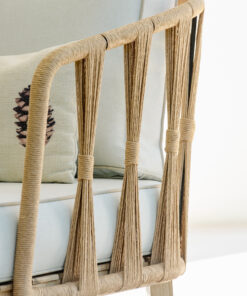 Una pieza de diseño que combina solidez y calidez. Su base en madera maciza de petiribí aporta resistencia y elegancia natural, mientras que el asiento y respaldo pueden elegirse en tejido de papel kraft o en cinta de polipropileno, logrando un acabado artesanal y contemporáneo. Perfecto para sumar estilo y confort en livings, galerías o espacios de relax.