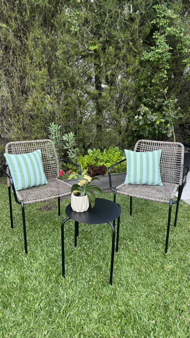 El combo que necesitás para crear tu rincón ideal. El Combo RÍO incluye dos sillas fabricadas en hierro y tejidas en soga + mesa de chapa, perfectas para balcones, patios o jardines. Su diseño combina estilo y funcionalidad, aportando calidez y comodidad a tus momentos al aire libre.