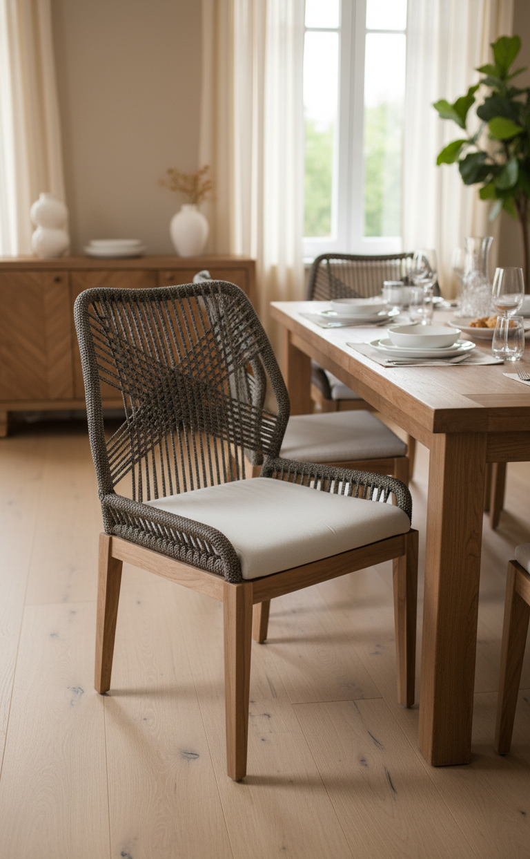 El combo ideal para tu comedor o galería. Incluye 4 sillas Pampa, un diseño muy original, sólido y ergonómico. Fabricada con estructura de petiribi macizo laqueado en poliuretano. Respaldo en caño con tejido en cordón de polipropileno y asiento tapizado. Cómo siempre podes personalizar el color de tejido y tapizado.