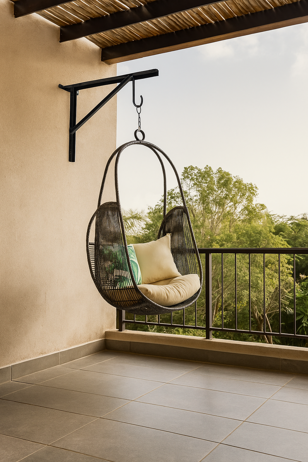 Un espacio de relax pensado para disfrutar al aire libre sin salir de casa. La hamaca está fabricada en hierro y tejida en soga de polipropileno ultra resistentes y confortables, es perfecta para leer, descansar o simplemente dejarse llevar. Su diseño aporta calidez y estilo, convirtiendo tu balcón o ese rincón en un verdadero espacio de descanso.