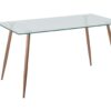 Mesa redonda Bari con cubierta de vidrio y patas metálicas efecto madera