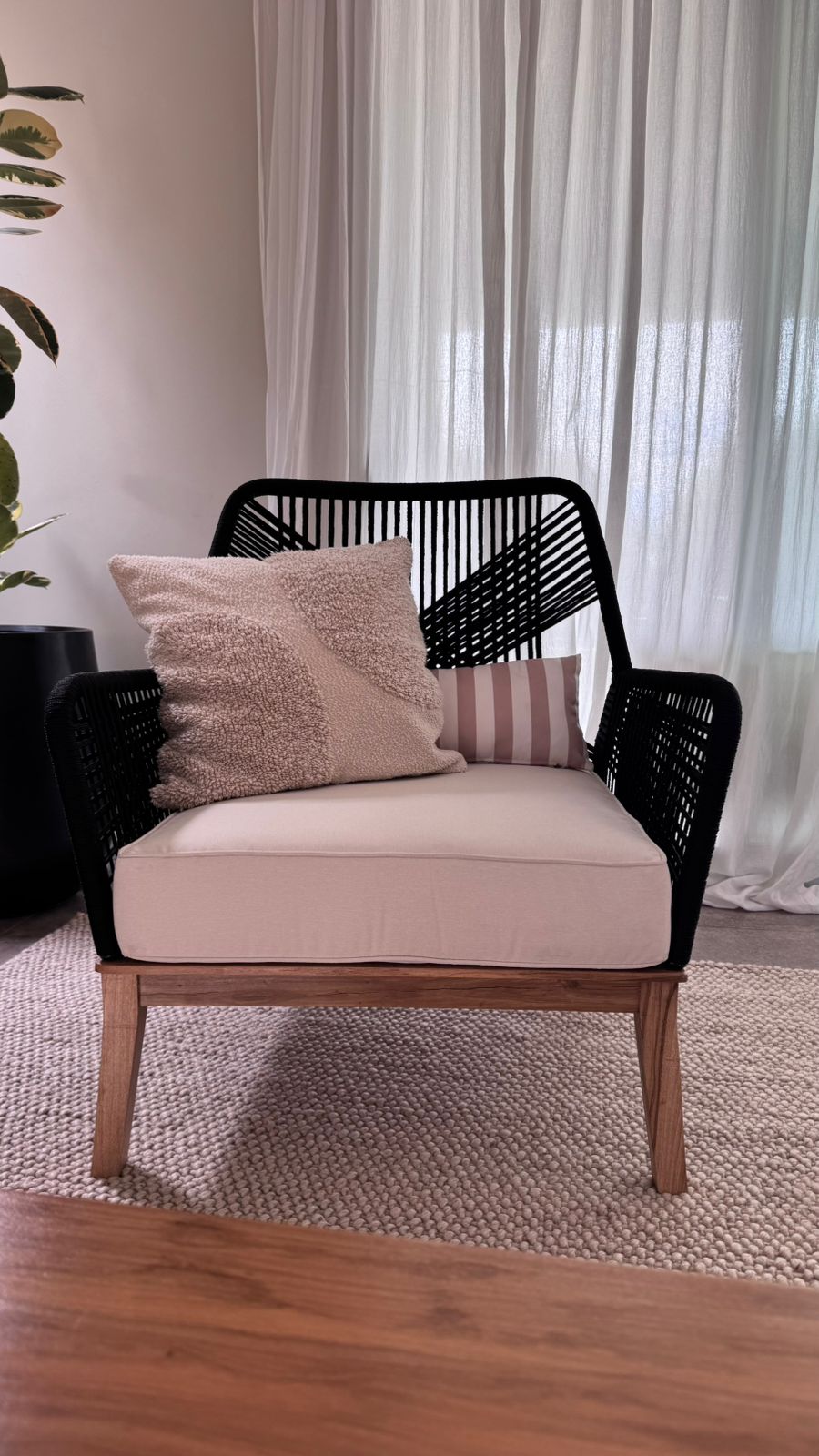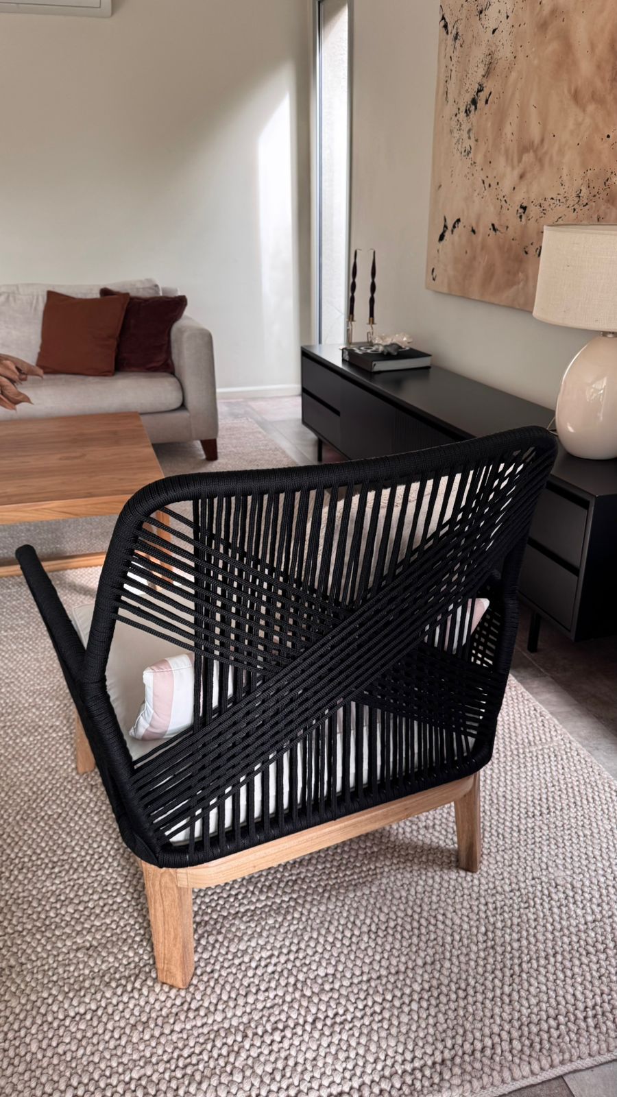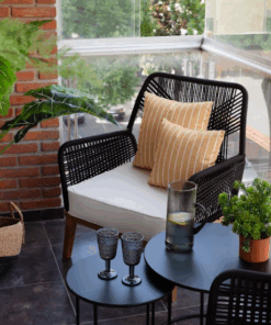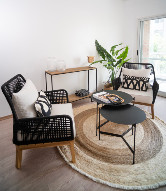 Respaldo con estructura tejida a mano y almohadones de alta densidad que garantizan comodidad y durabilidad.