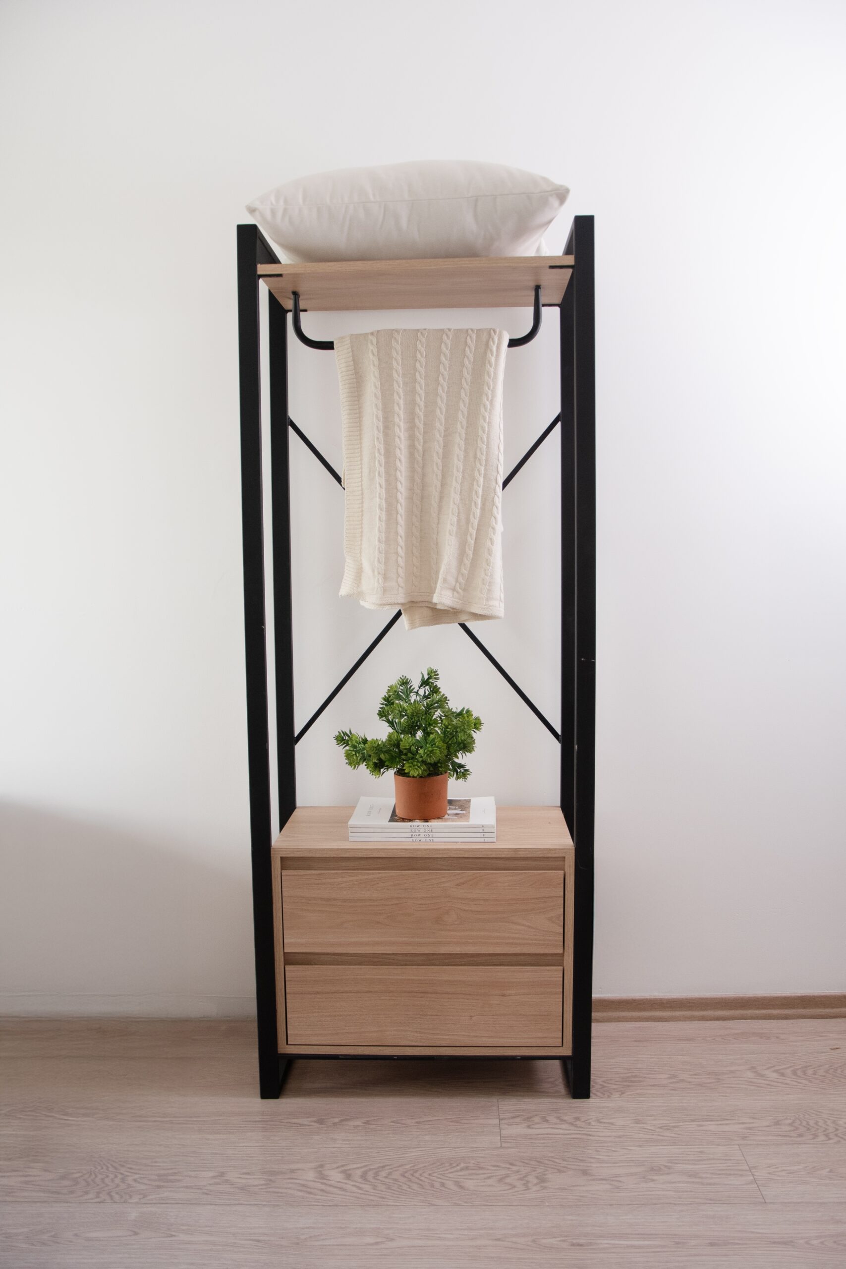 Recibidor ALMA: Elegante mueble de entrada, con estructura de hierro y enchapado en madera de paraíso. Su diseño combina robustez y calidez, ideal para aportar estilo y funcionalidad al hall de tu hogar. Perfecto para recibir a tus invitados con un toque sofisticado y natural.
